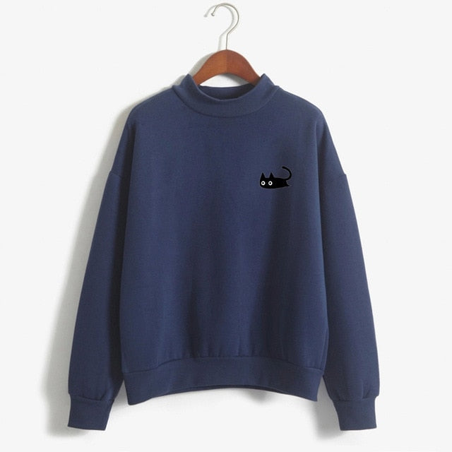 Casual, cosy cotton jumper with cute cat design.