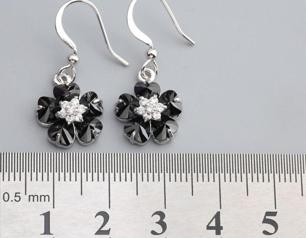 Wonderful drop flower shaped earrings with black stone, perfect for festivals and summer days.